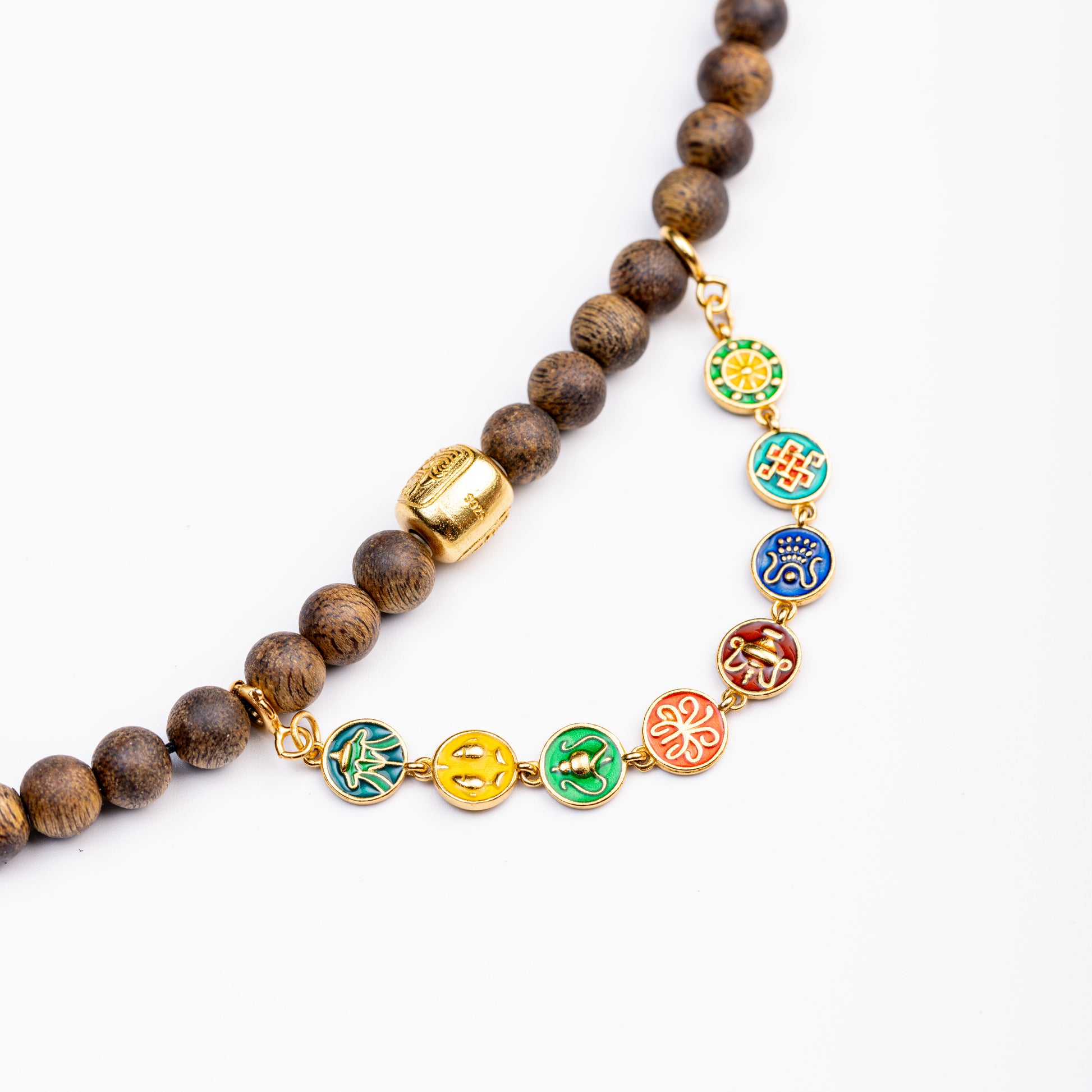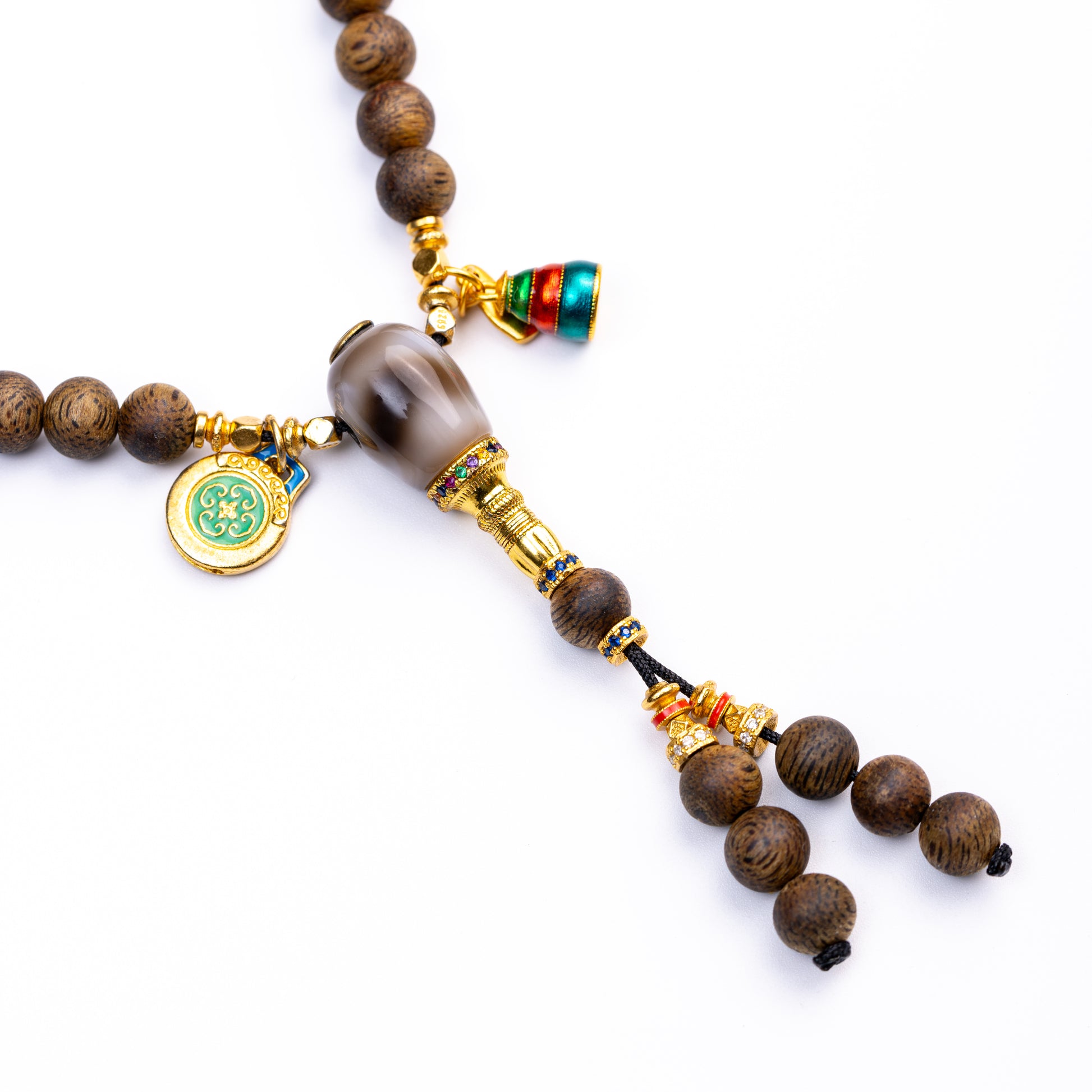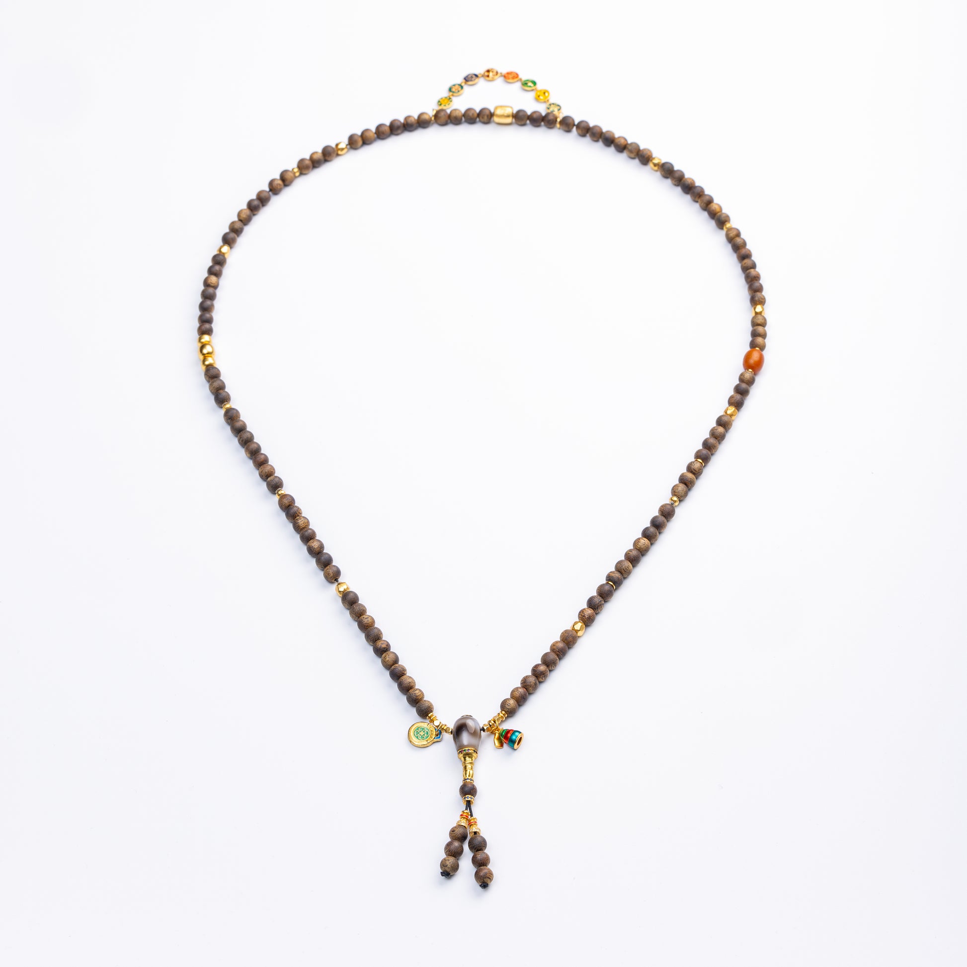 Sacred Agarwood carries centuries of spiritual wisdom, its subtle fragrance fostering deep meditation and inner peace. Golden Beeswax beads add nurturing warmth and protective energy, symbolizing ancient knowledge and emotional stability. The comfortable length allows the aromatic essence to rest close to your heart chakra.