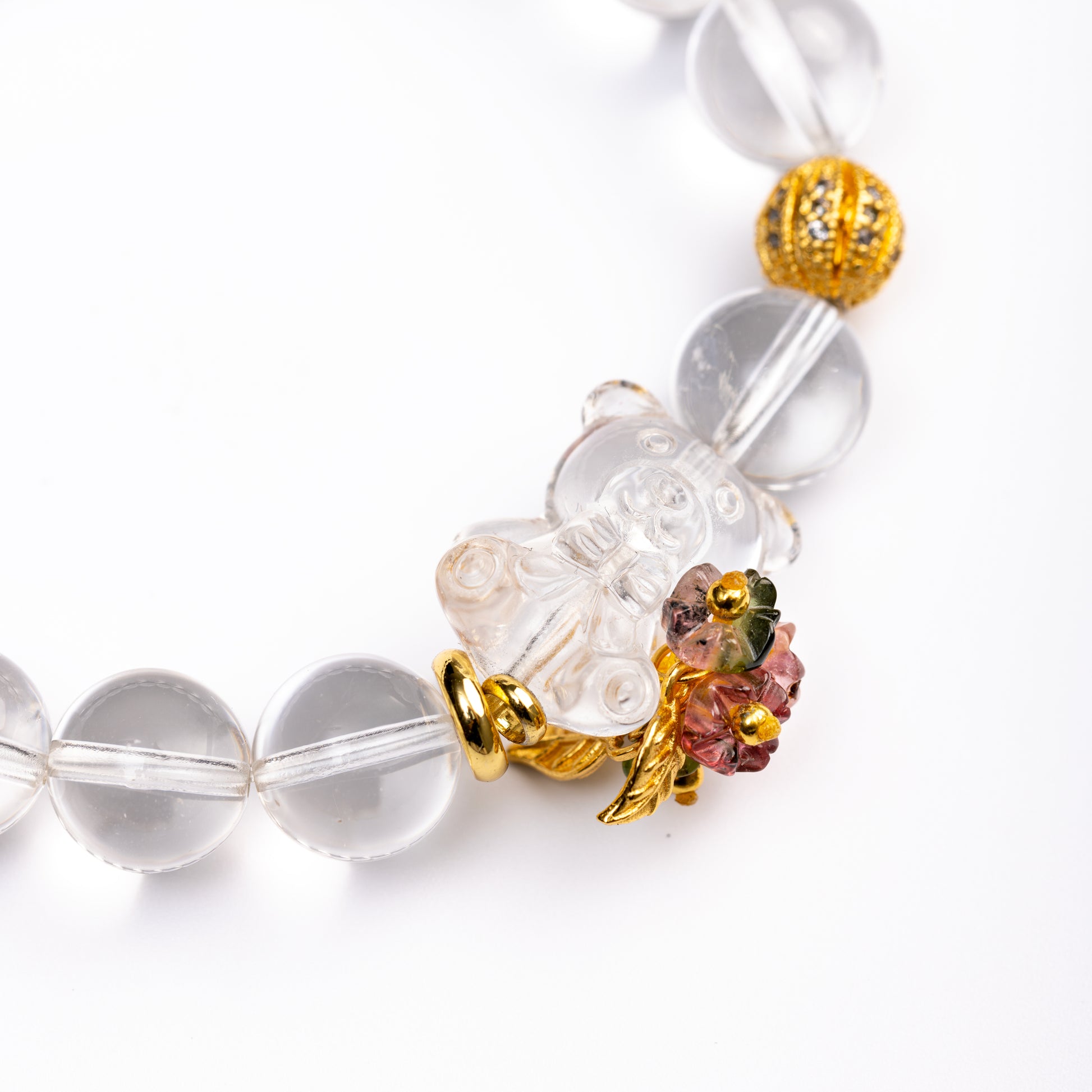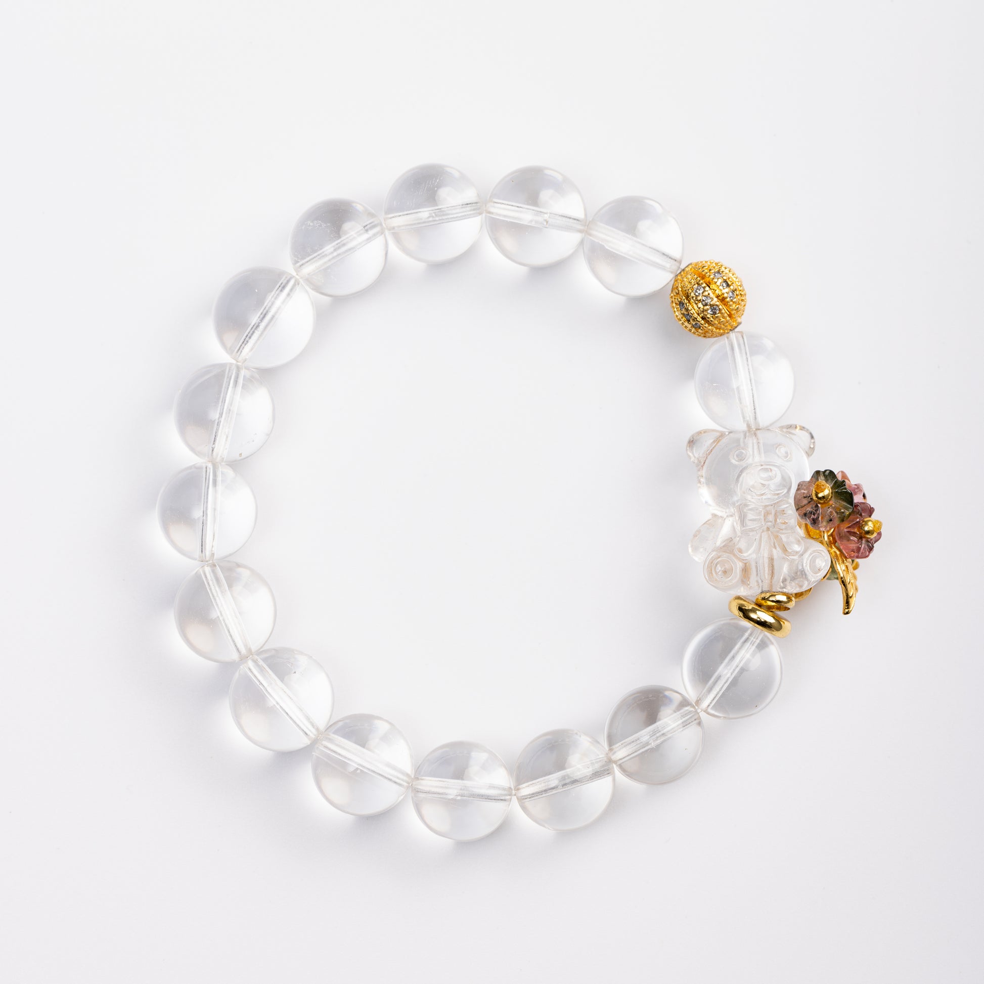 Celebrate pure joy with this charming elastic bracelet, featuring luminous Clear Quartz beads and an adorable bear charm that brings innocent delight.