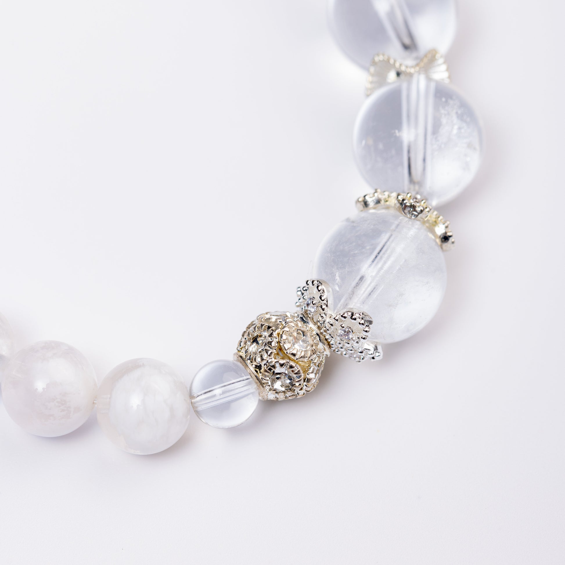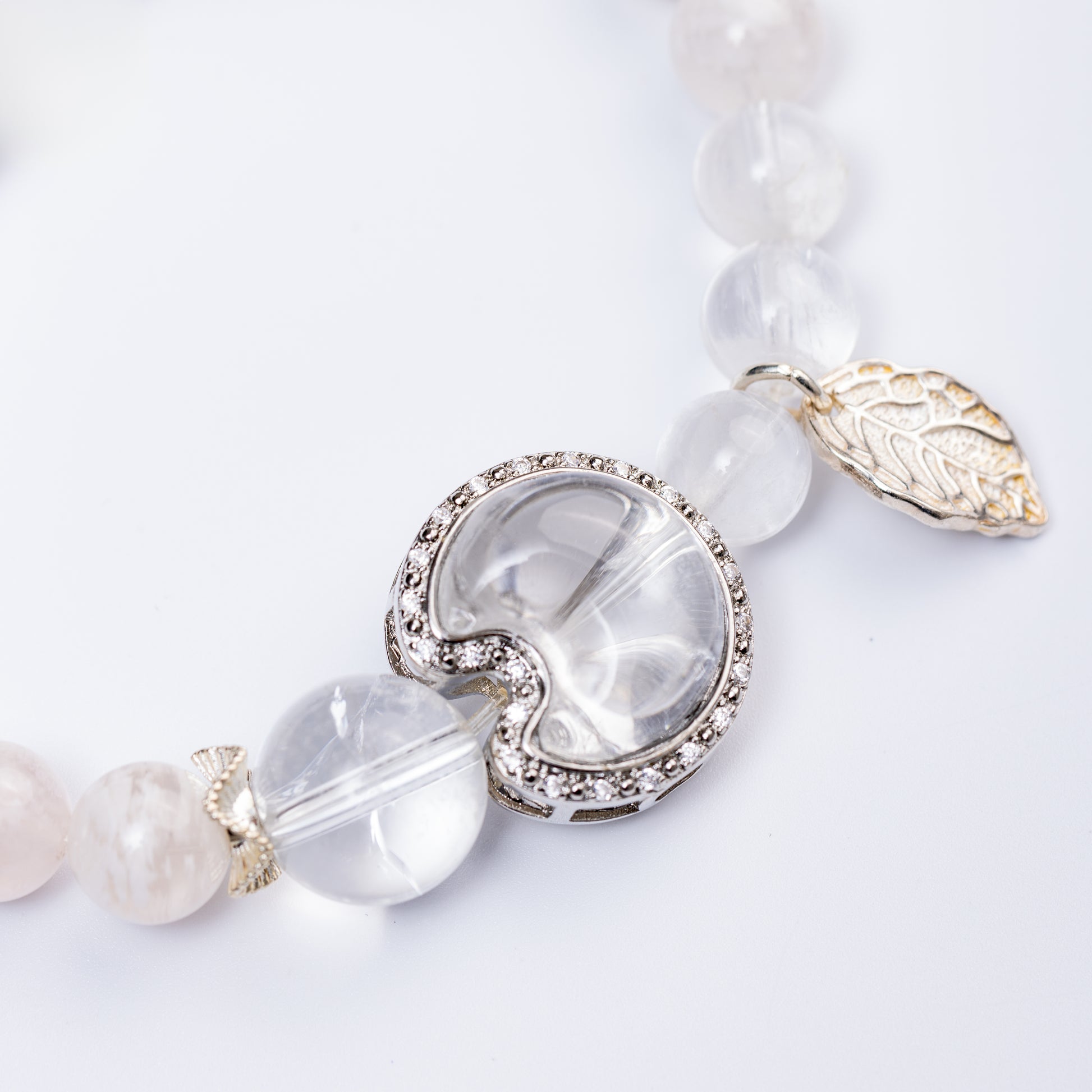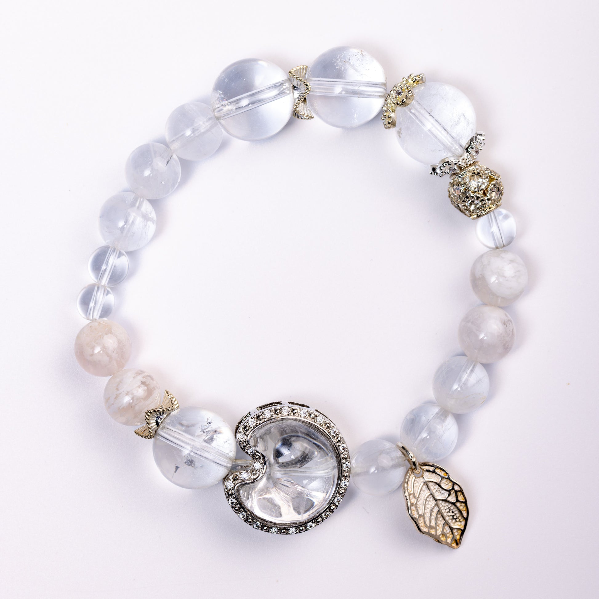 Each Snowflake Phantom Quartz bead acts as a miniature snow globe, its unique inclusions symbolizing life's beautiful imperfections. The Clear Quartz components work as energetic magnifiers.