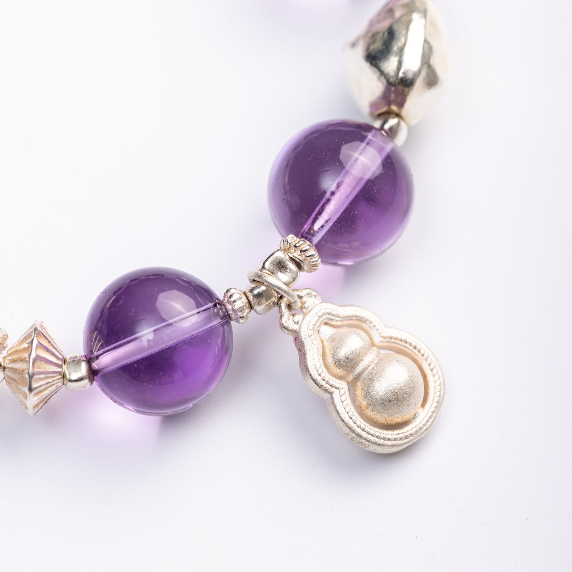 Embrace spiritual nobility with this elegant elastic bracelet, featuring luminous Amethyst beads in varying sizes and shapes, radiating royal purple wisdom.